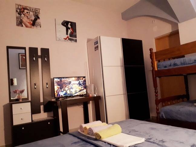 Die Unterkunft befindet sich 10 m vom Meer entfernt. Es hat Blick auf den Pašman-Kanal, die Stadt Biograd, Sv. Filip und Jakov, Turanj und Pakoštane, und im Herzen der Insel gibt es zwei kleine Inseln bekannt als die Katharina (was eine schöne Aussicht von der Fähre ist, wenn es um die Insel Pasman-Tkon kommt) Babac (er ist auch von der Fähre in Richtung Biograd-Tkon gesehen). Die Fahrt mit der Fähre ist 15 Minuten entfernt, nur um die Schönheiten unserer Inseln und des Pasman-Kanals zu sehen. Apartments können auch von der Fähre aus gesehen werden. Unsere Apartments befinden sich, wenn Sie die Fähre links von 100m verlassen. In der Schule der Wohnung haben wir auch mehr Freizeitaktivitäten: - Tretbootverleih - Family Skipper für bis zu 4 Personen und Fast Food und Ga-Ga Beach Bar befinden sich am Strand wie auf der Website gezeigt.