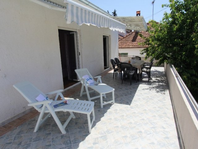 Apartments Josini Dvori A2 sind in einem Einfamilienhaus in Biograd. Das Haus liegt in einem ruhigen Ort, in der Nähe von Sandstränden Slanica und Crvena Luka