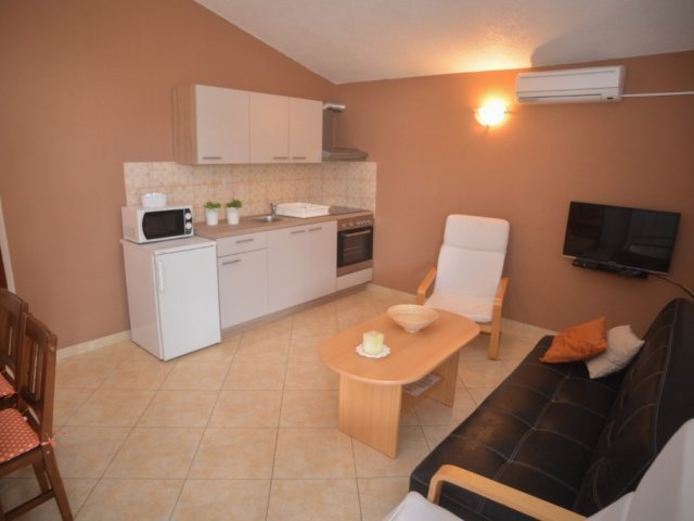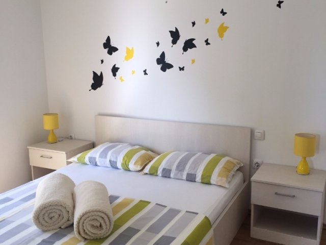 Apartma le 80m od morja. Sestavljen je iz dveh spalnic, jesti več kot dvakrat