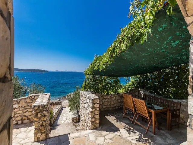 Robinsonova hiša na otoku Pašman s pogledom na nacionalni park Kornati.