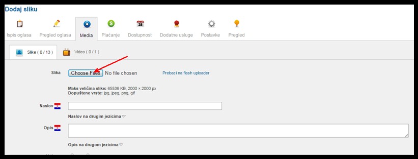 Nakon što ste odabrali fotografije idete na "Dodaj sliku":